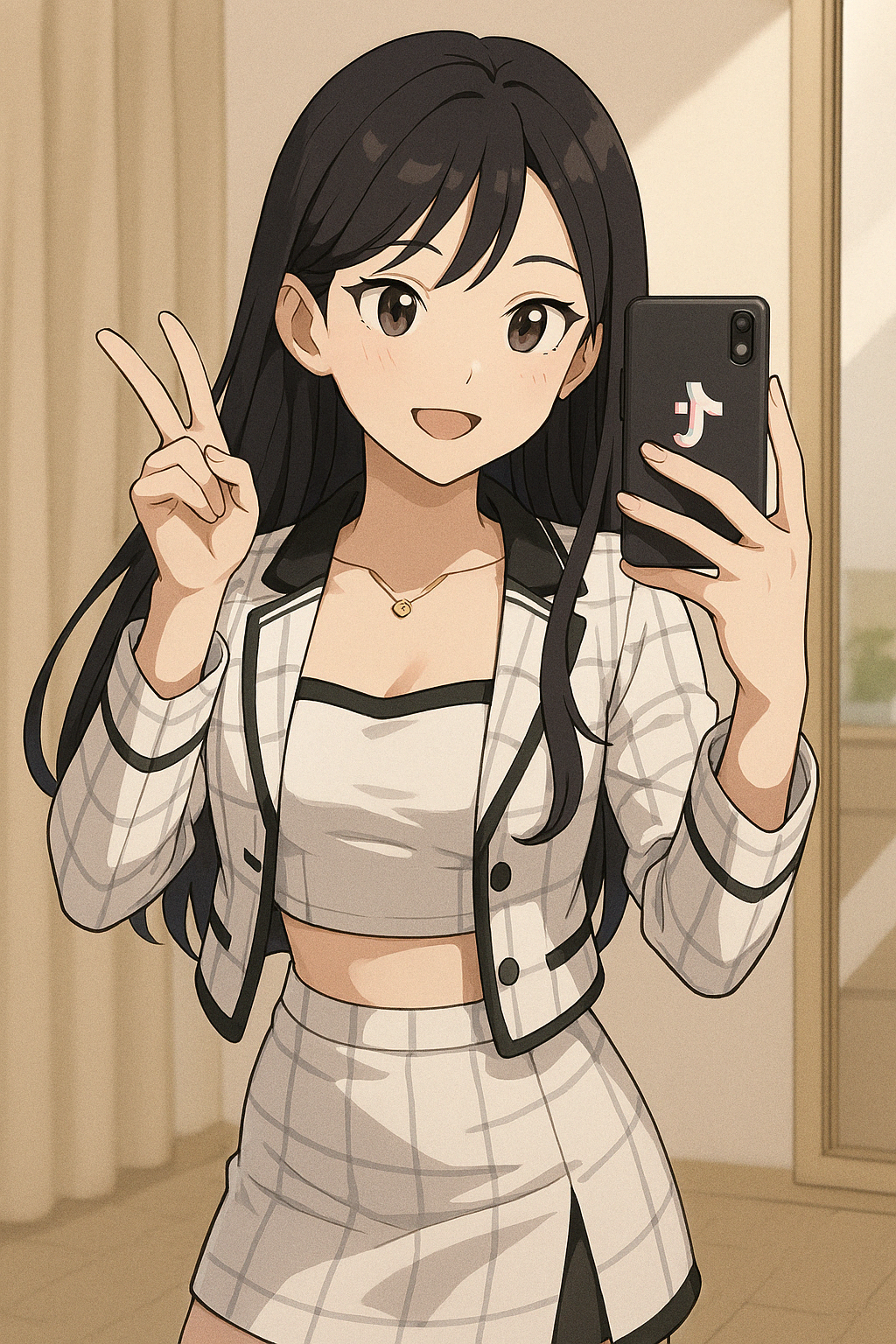 아이돌들이 셀카에서 자주 사용하는 기술! 입술을 다물고 입꼬리만 살짝 올려 자연스러운 미소를 연출합니다.
